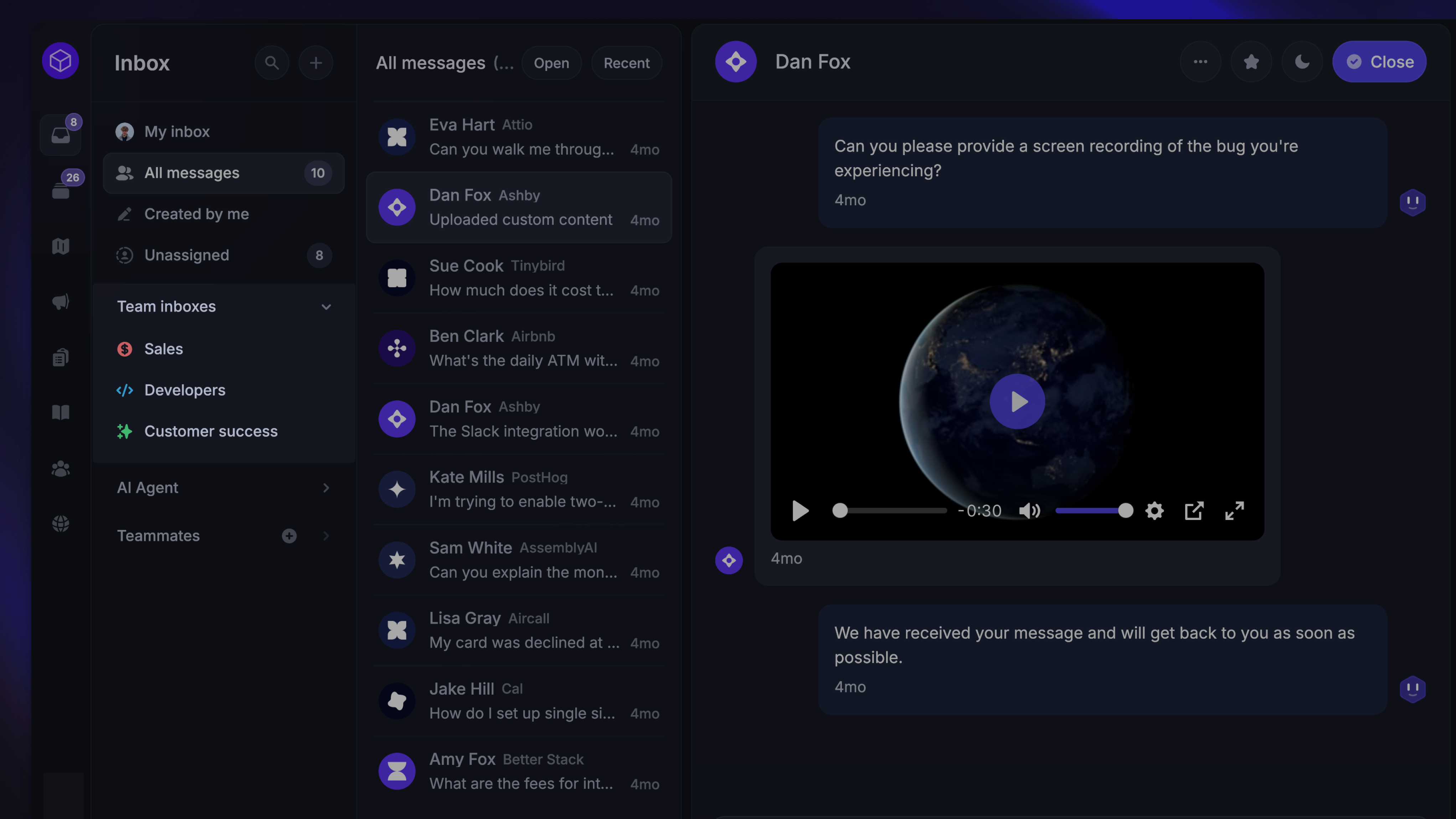 Regional – If your support team is split across different regions or time zones, it’s helpful to create separate inboxes for each region. This allows regional managers to manage their teams better and helps track reply times specific to each area.