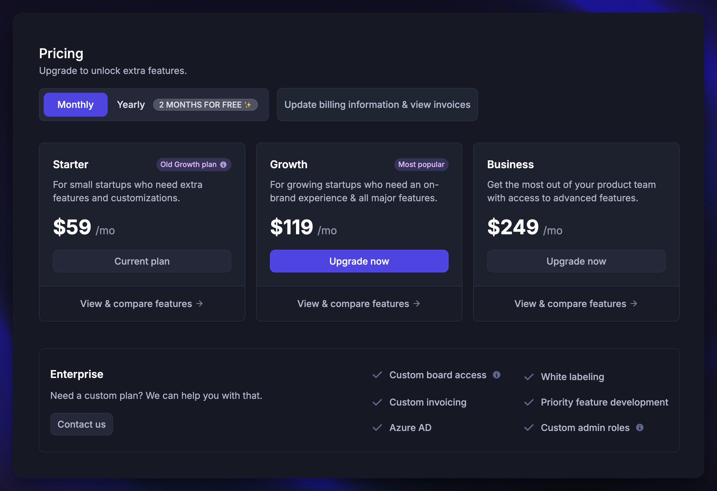 ✨ Existing customers are grandfathered to the legacy pricing. You can keep it for as long as you’d like, unless you choose to upgrade!