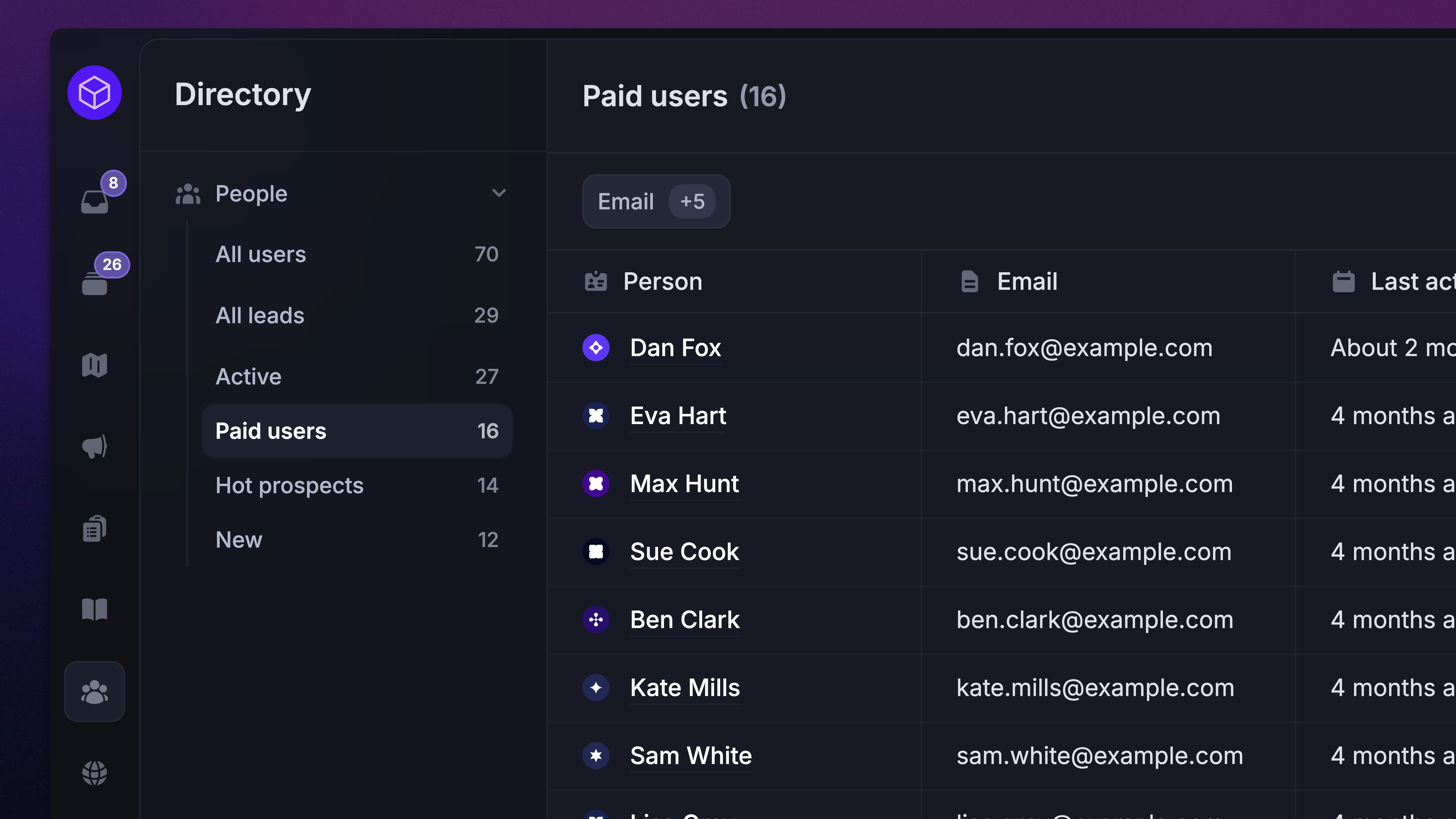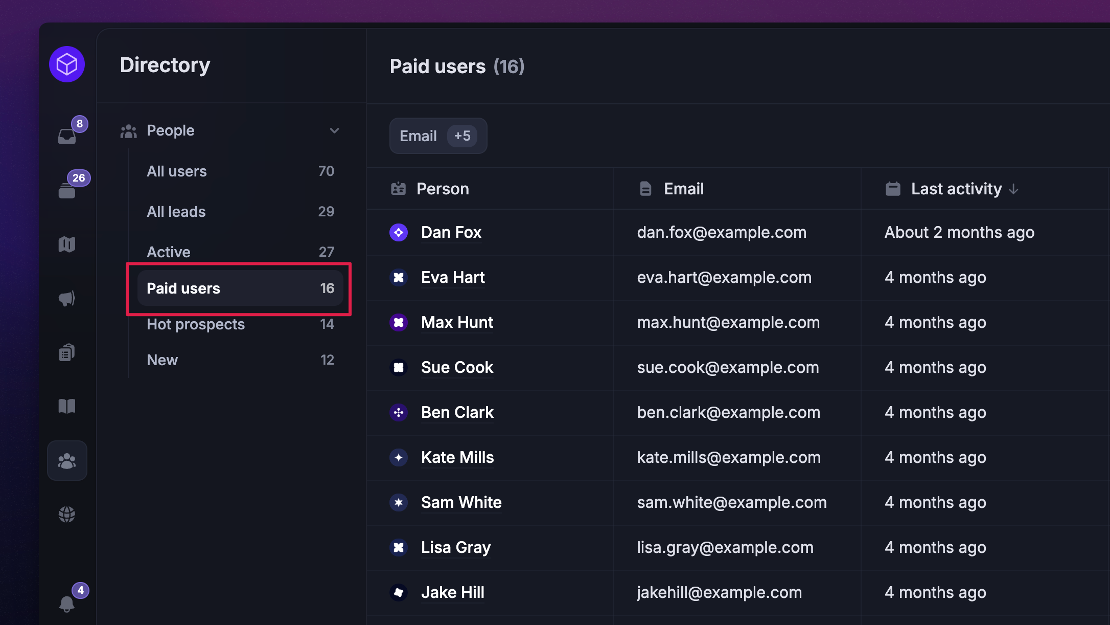 Custom attributes: sync and segment users using attributes like location, plan, etc