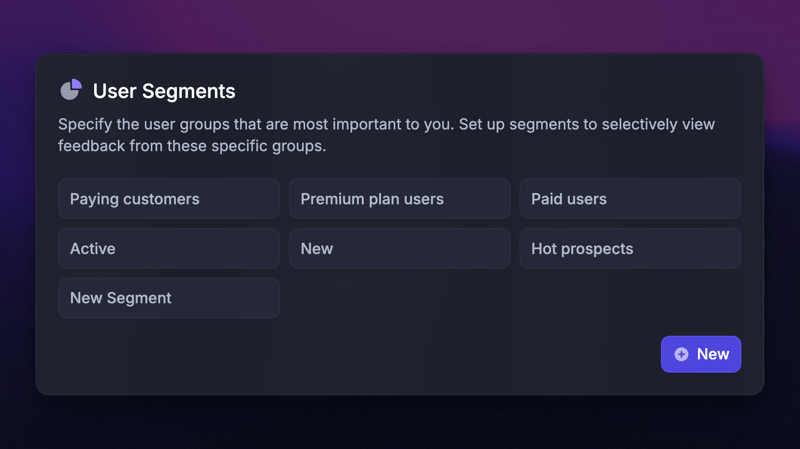 Filter your users by specific rules to create user segments, which you can later use to prioritize feedback, target messaging, and restrict access.