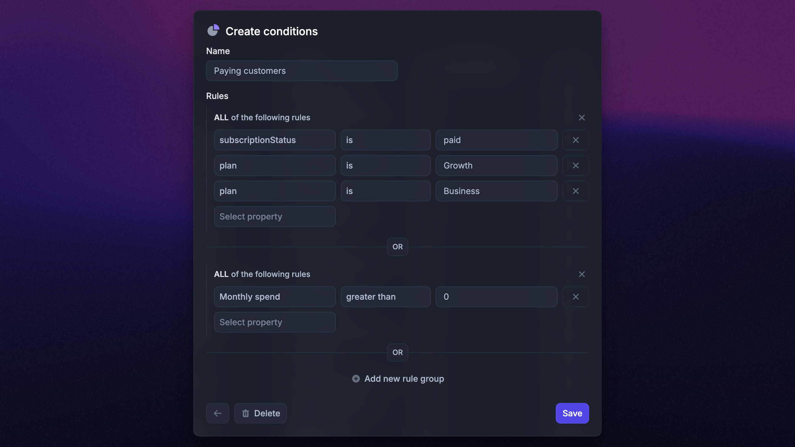 Beta testers - These are users who have special access to one of your features and provide feedback on it. You can tag the users with a specific ‘Beta tester’ tag and use this to create the segment rule.