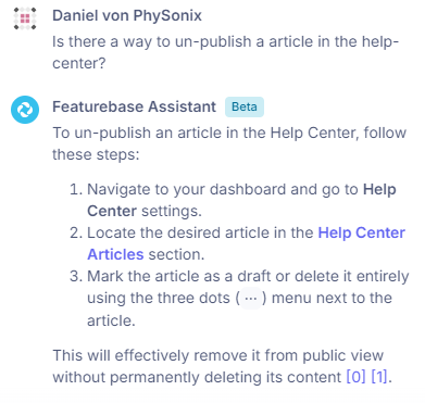 Would be nice to be able to un-publish an article in the help center. Lets say you clicked “publish” by accident or something like that.